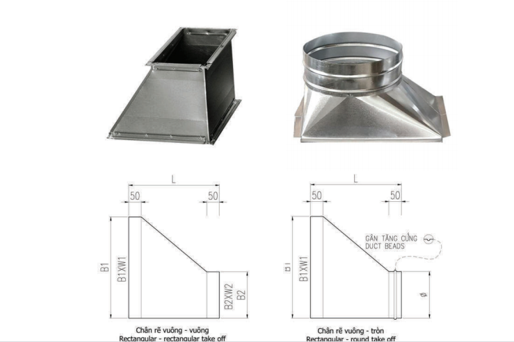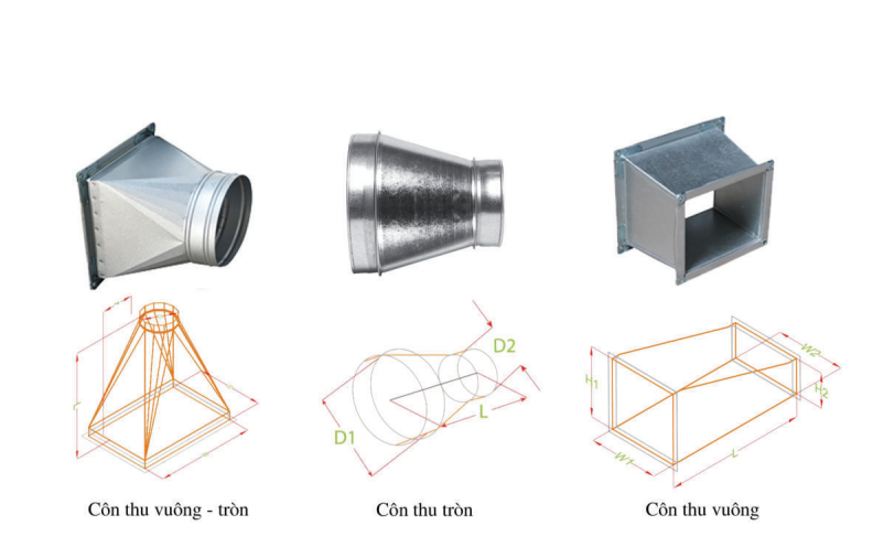 e. Ống chuyển tiết diện-phụ kiện ống gió